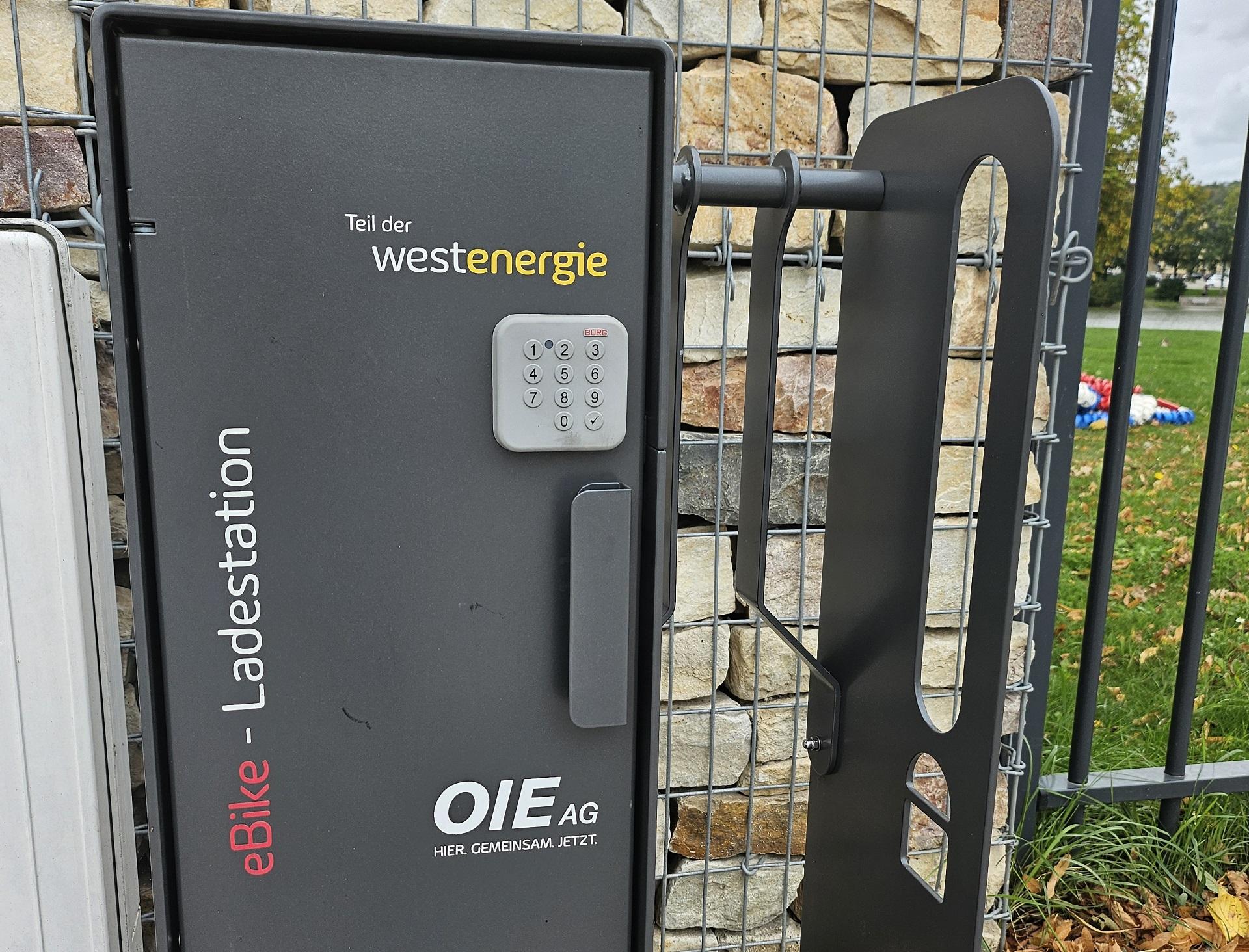 Radfahrende können ihre Akkus während einer Pause bequem anschließen und sicher laden, während Kinder auf dem Spielplatz spielen oder ein Spaziergang um den Weiher gemacht wird. Abschließbare Fächer und integrierte Schuko-Steckdosen ermöglichen Radfahrenden, ihre Akkus geschützt aufzuladen.