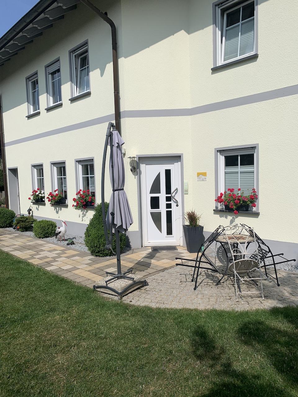 Unser Haus befindet sich in ruhiger Waldrand Lage inmitten eines weit verzweigten Netzes von Wanderwegen, Nordic-Walking und Mountainbike-Strecken. Zu unserer gemütlichen Komfort-Ferienwohnung (110 qm Wohnfläche) mit separatem Eingang gehören ein offener Wohn-/Essraum, eine sehr gut ausgestattete Küche mit Tresen und Barhockern (Elektrogeräte: Spülmaschine, Backofen, Ceran Kochfeld, großer Kühlschrank mit separatem Gefrierfach, Mikrowelle, Reiskocher, Kaffeemaschine, Toaster, Wasserkocher), ein Doppelbett - Schlafzimmer, ein Zweibett - Schlafzimmer, ein Duschbad mit Wanne und WC sowie ein separates Gäste-WC mit Waschmaschine.