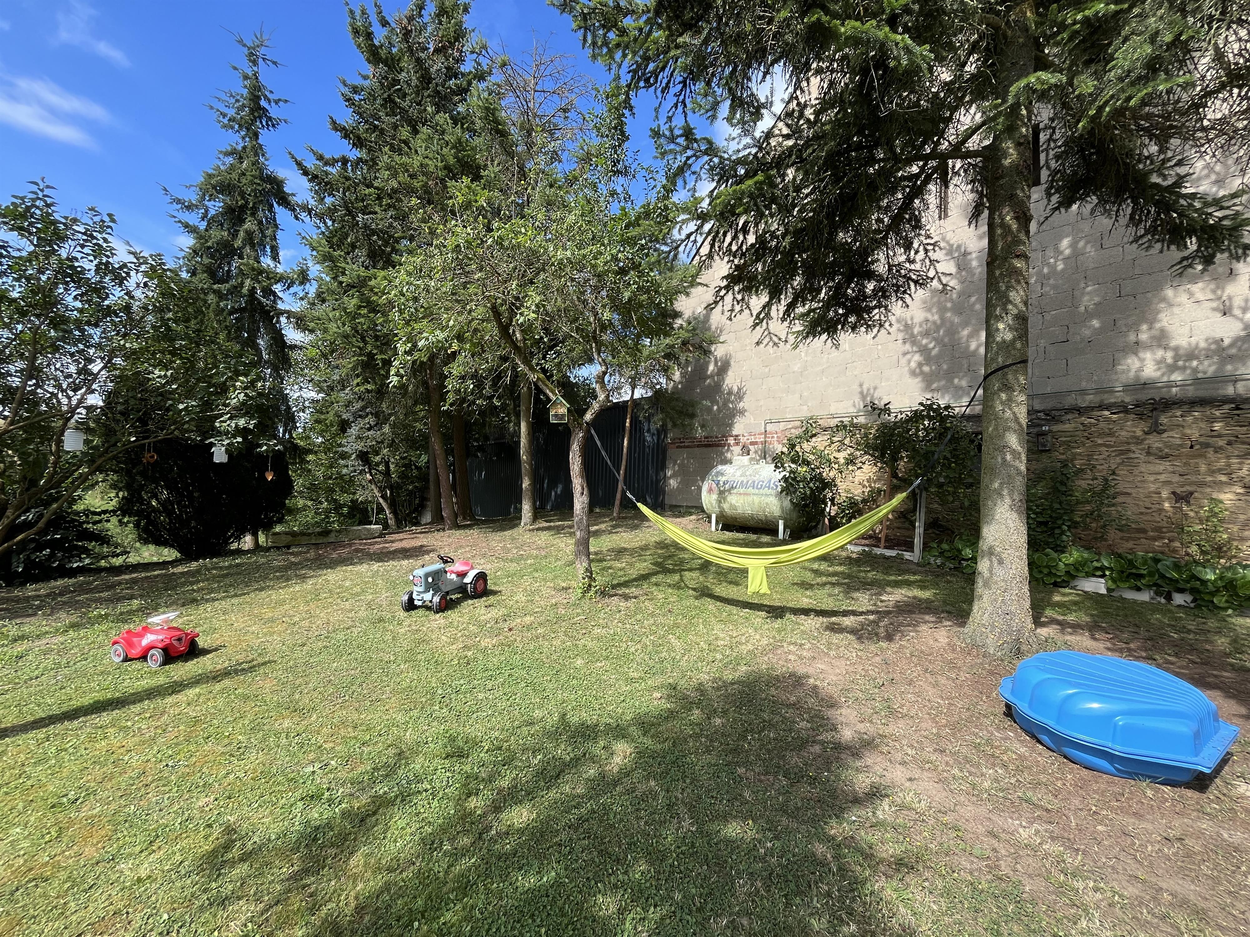 Im weitläufigen Garten befindet sich eine gemütliche Sitzecke, die zum Teil überdacht ist. Er eignet sich perfekt für gemütliche Grillabende. Für Kinder stehen verschiedene Fahrzeuge und Spiele bereit. Der Garten ist Kindgerecht mit einem Zaun abgesichert.