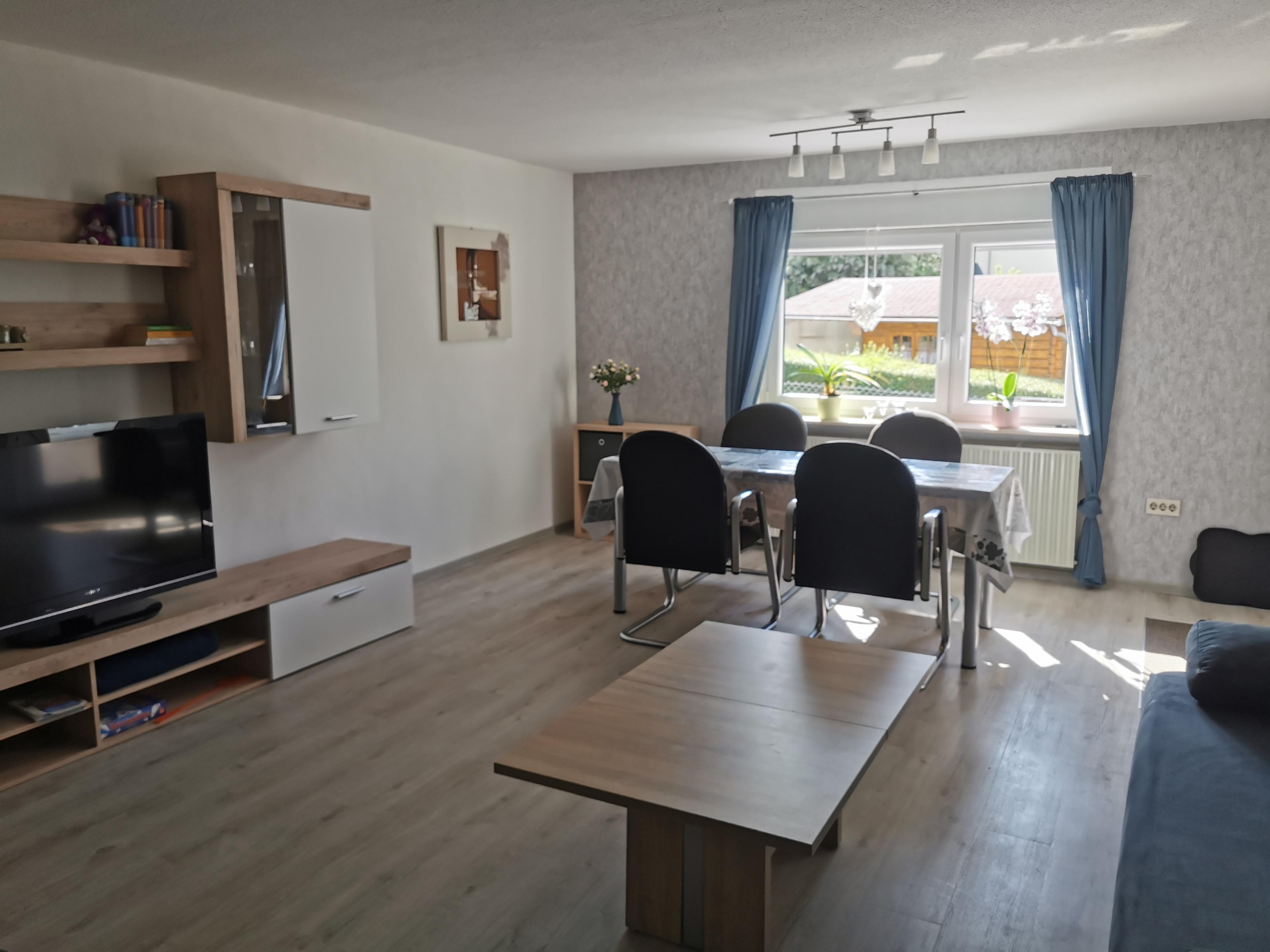 Sie wohnen: in einer 60 qm großen Ferienwohnung mit Schlafzimmer, sep. Küche, Wohnzimmer mit Doppelcouch und großer Essecke, Bad mit Dusche, barrierefreiem Eingang, Terrasse und Liegewiese. WiFi vorhanden.