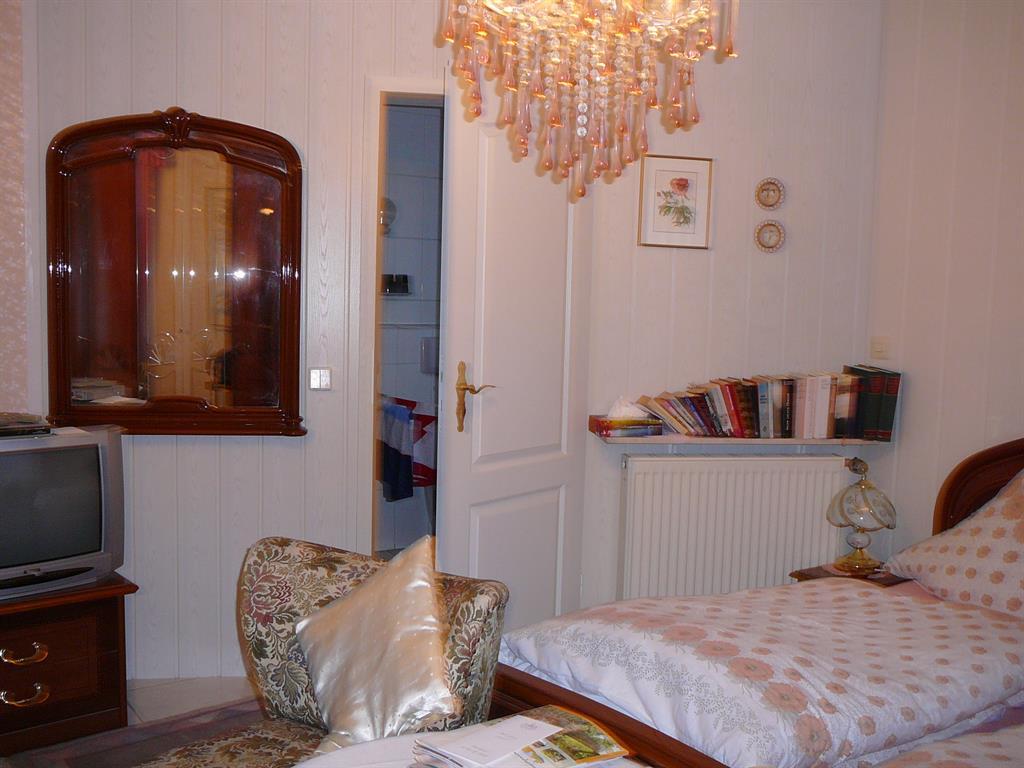 Sie wohnen: Sehr ruhige Wohnlage. Nichtraucherzimmer. Vom Aufenthaltsraum (Wintergarten) blicken Sie über den Garten hinweg in die Weinberge.