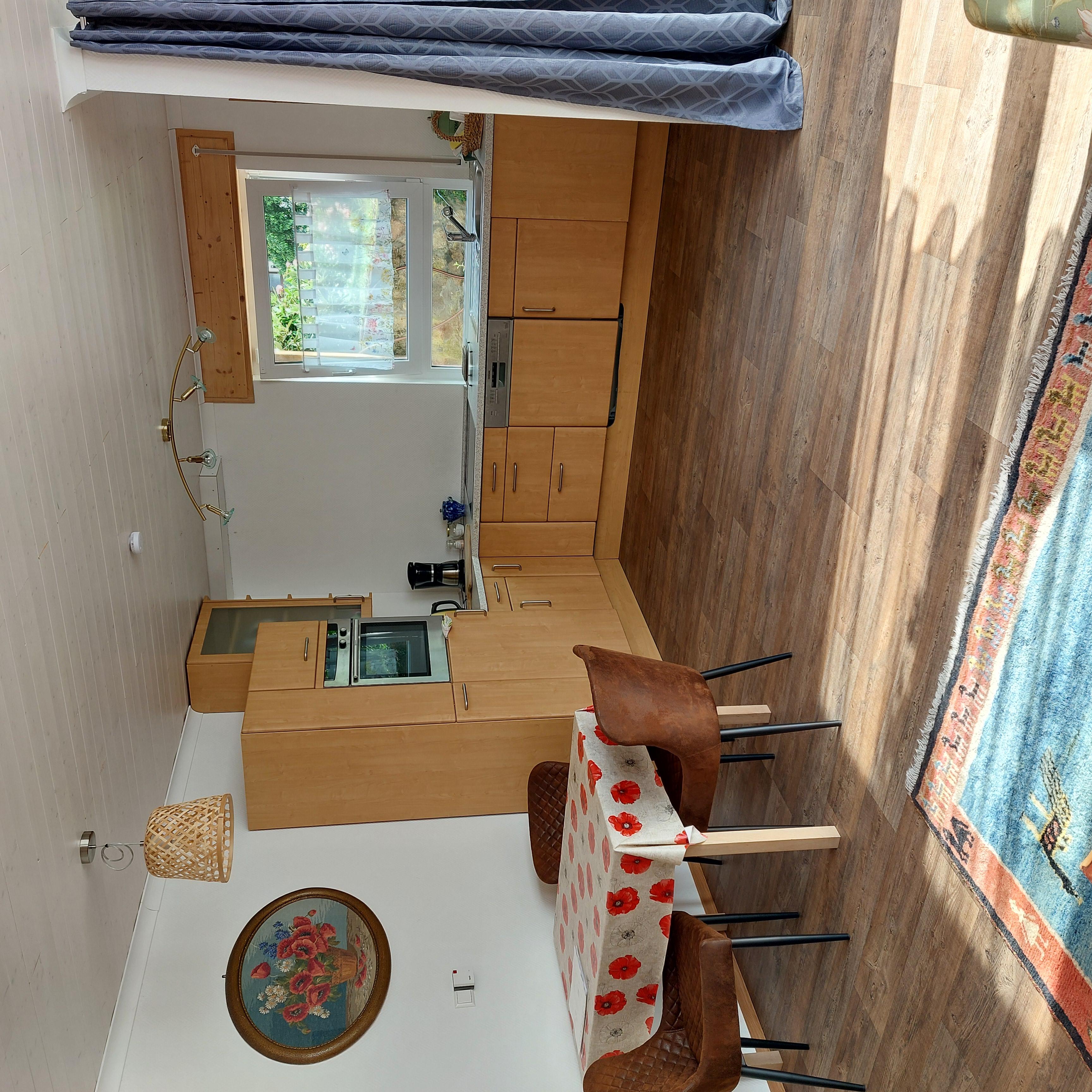 Gemütliches Wohnen in hochwertiger Ausstattung wie Massivholzmöbel, Elektroheizung durch Solar und für Kuschelabende ein elektrischer Kamin. In einer komplett eingerichteten Küche werden Sie nichts vermissen, direkt daneben ist der Essplatz für bis zu 4 Personen. Die große Dusche ist ebenerdig und die Terrasse lädt zu Grillabenden ein. Alle Räume liegen in Ost-Süd-Richtung sodass Sie morgens von der Sonne begrüßt werden und erleben so den ganzen Tag Urlaubsfeeling pur.