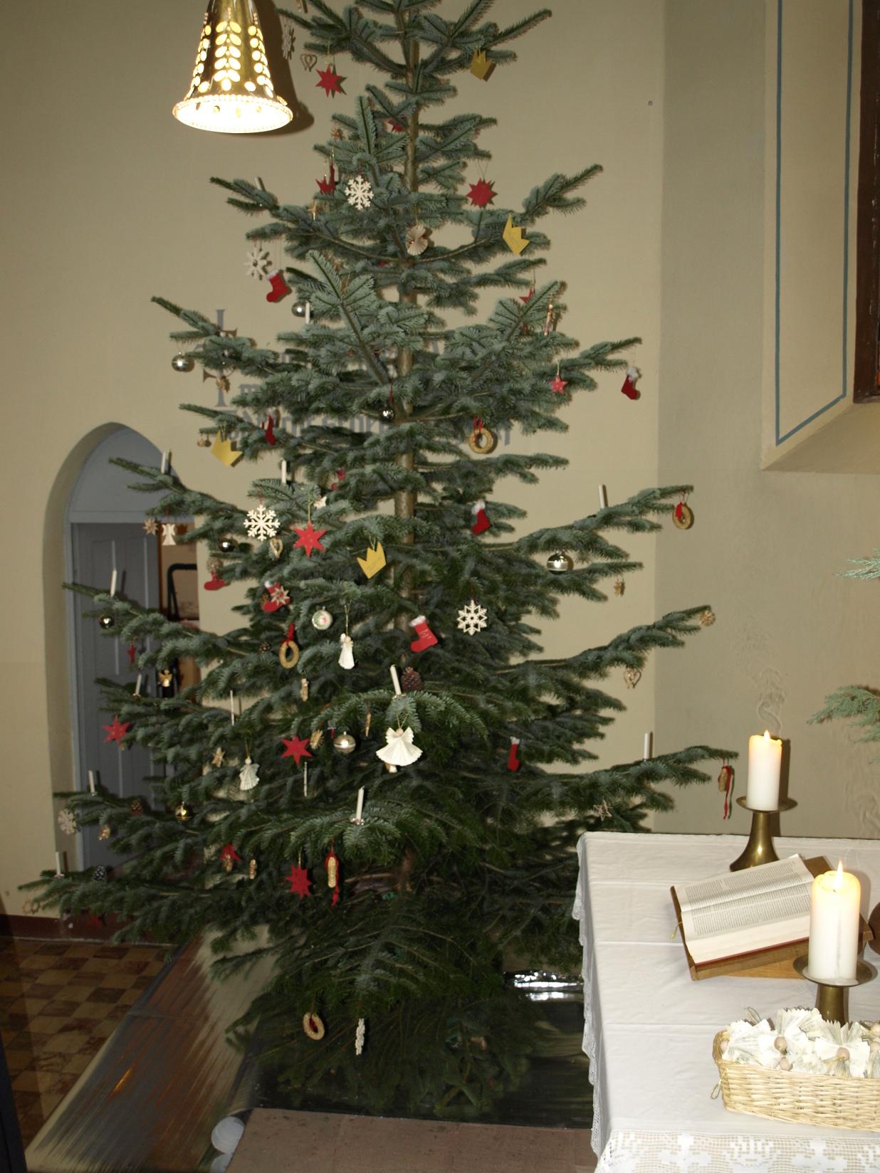 Die Ankersymbole aus Holz dürfen, zur Erinnerung an den Gottesdienst in Eckweiler und zum Schmücken des eigenen Weihnachtsbaumes, mitgenommen werden.