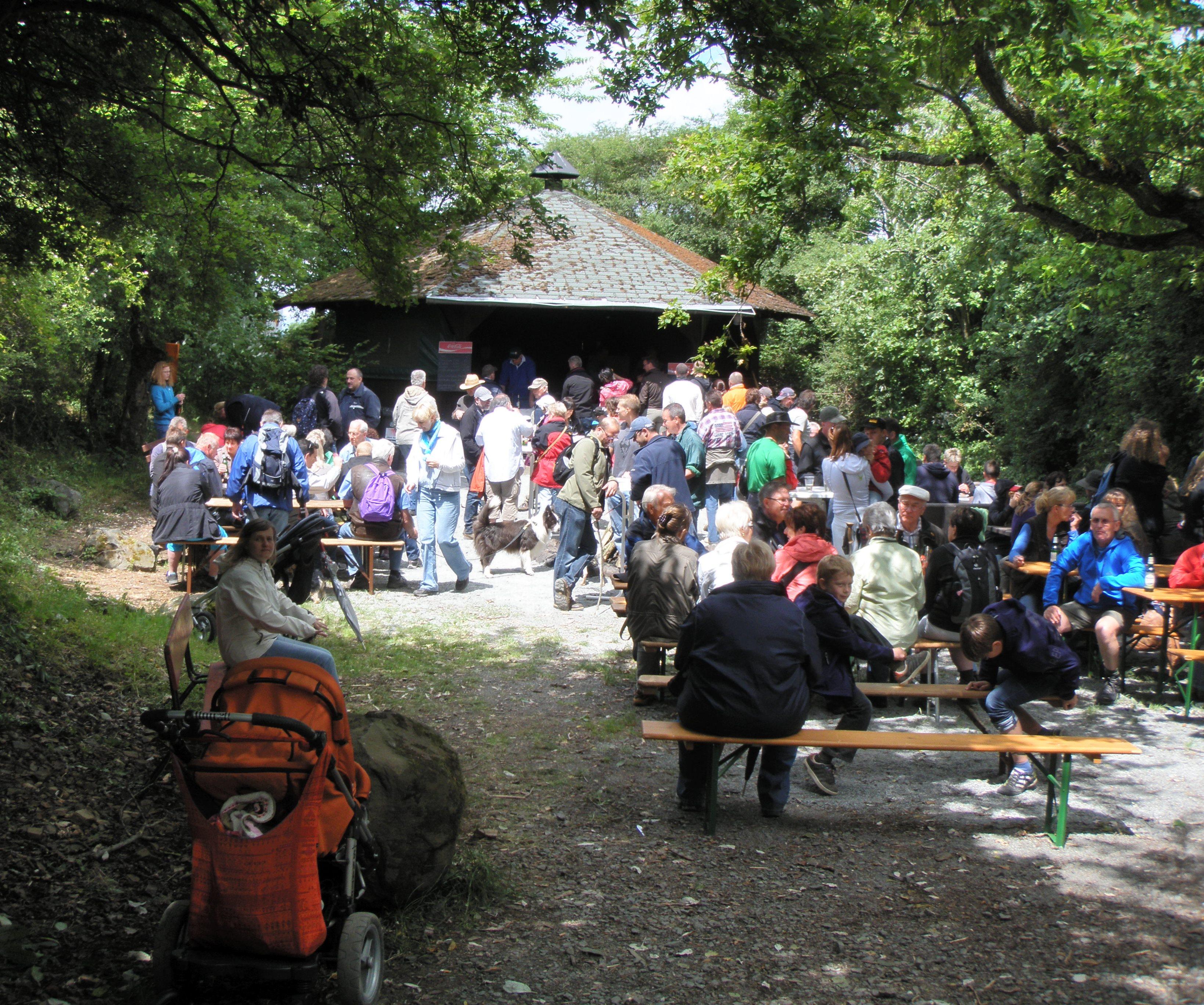 Die Vielfalt der Landschaft zeigt sich auch in der Vielfalt der angebotenen Speisen, die überwiegend aus der Region stammen. Handkees met Musigg, Schwademahsalad, Wildsaumah, Fläschknepp, Märedisch un Sauerkraut, Gedriggelde un Roschdische Ritter und alles selbst gemacht, um nur einige der Angebote zu nennen. Eine 3-sprachige Speisekarte auf deutsch, pfälzisch und englisch, lässt keine Wünsche offen. Seien es geräucherte Forellen, Gemüsefrikadellen oder auch hausgemachte Kuchen des Kreativen Frauentreffs, alles frisch zubereitet aus den Weihern und Wäldern.