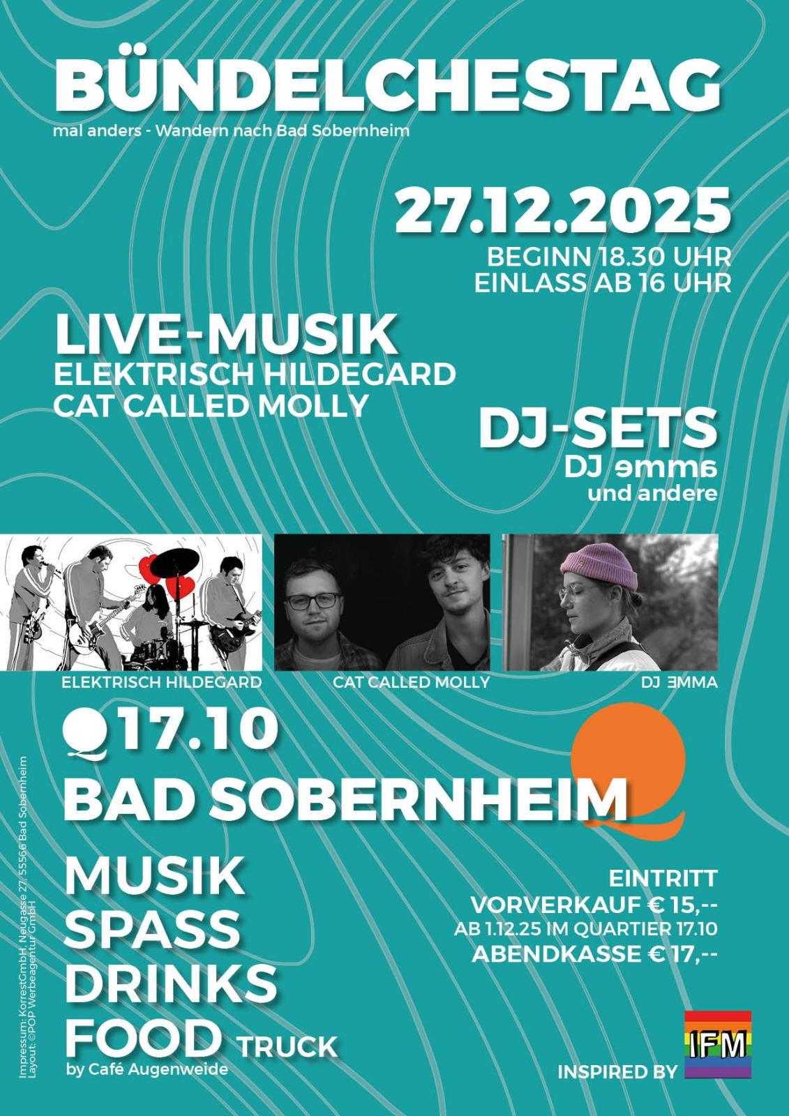 15,-€ Vorverkauf (im Quartier 17.10) 17,-€ Abendkasse