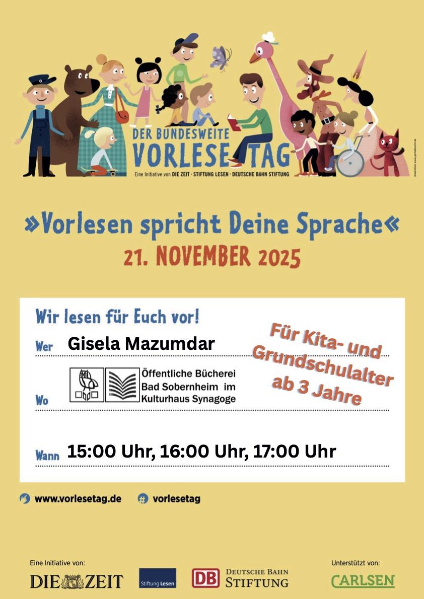 In diesem Jahr findet der Bundesweite Vorlesetag unter dem Motto: „Vorlesen spricht Deine Sprache“ statt. Es unterstreicht, wie vielseitig Vorlesen ist und zeigt gleichzeitig, dass jede einzelne Sprache und Stimme zählt. Denn Geschichten schaffen Verstehen, fördern den Austausch, stärken das Miteinander und legen die Grundlage zum Lesenlernen.