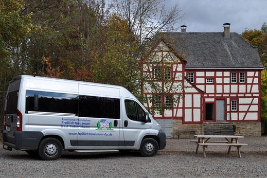 Einsteigen und los geht die Erkundungstour im Rheinland-Pfälzischen Freilichtmuseum in Bad Sobernheim. Um 14.00 Uhr startet dieses besondere Angebot für Menschen mit Geheinschränkungen. Gemütlich im Kleinbus sitzend, lassen sich die angemeldeten Gäste in die Vergangenheit entführen. Stopps in allen Baugruppen laden dazu ein, das eine oder andere Haus näher zu erkunden.