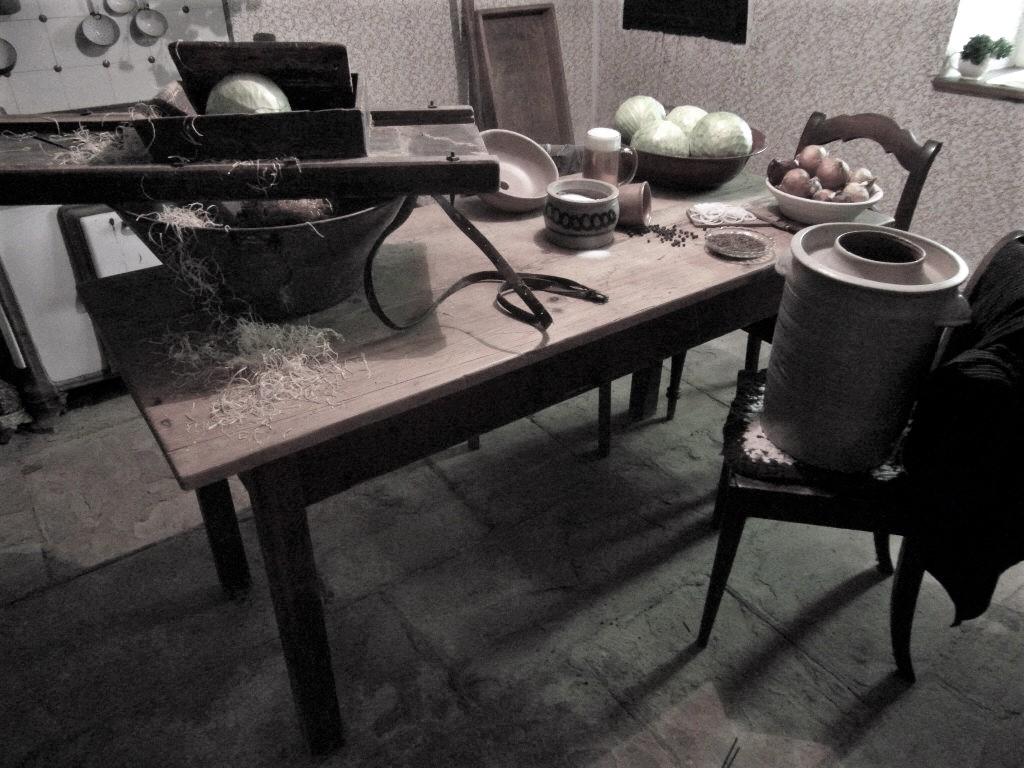Noch vor 100 Jahren wusste jede Hausfrau, wie sie genügend Vorräte für den Winter lagern und haltbar machen konnte. Lebensmittel darren, einkochen oder einlegen gehörte dazu. In diesem Kurs können die Teilnehmer ihr Sauerkraut selber machen. Hierfür bedarf es eines besonderen Topfes, der mitgebracht werden muss. Die Teilnehmer erfahren Manches mehr über die Vorratshaltung ohne Strom oder auch den Kappesschneider, der mit seinem großen Kappesbrett von Haus zu Haus zog.